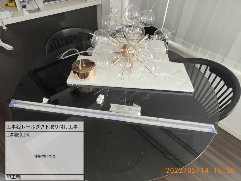 元の場所から配線を取り、レールダクトを取付、照明器具を取付の流れとなりました。