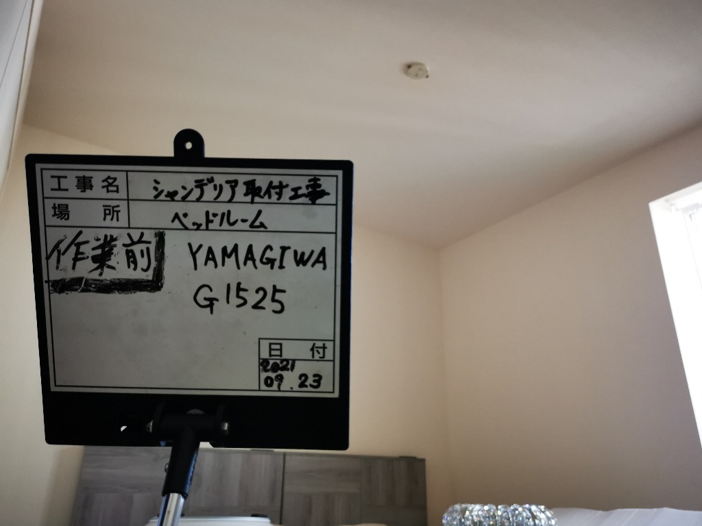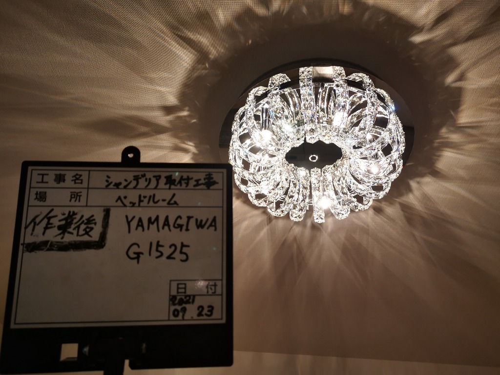 シーリングライトからyamagiwaのシャンデリアへ交換工事をして参りました。