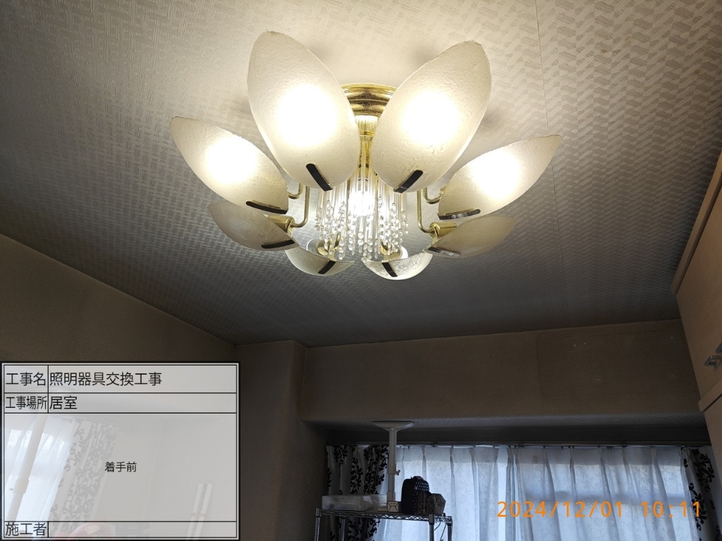 直付けシャンデリア撤去及びシーリングライト取付工事